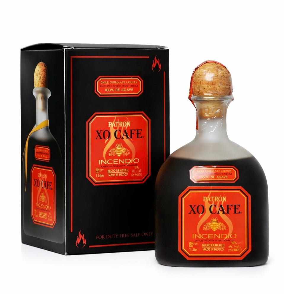 Patrón XO Cafe Incendio is a strong and fiery chile chocolate liqueur that combines the heat of the Mexican chile, the rich notes of dark chocolate and the crisp smoothness of Patrón Silver tequila. The distinctive sweet and spicy flavor is perfect alone as a shot or over ice, as well as for mixing in cocktails and desserts.