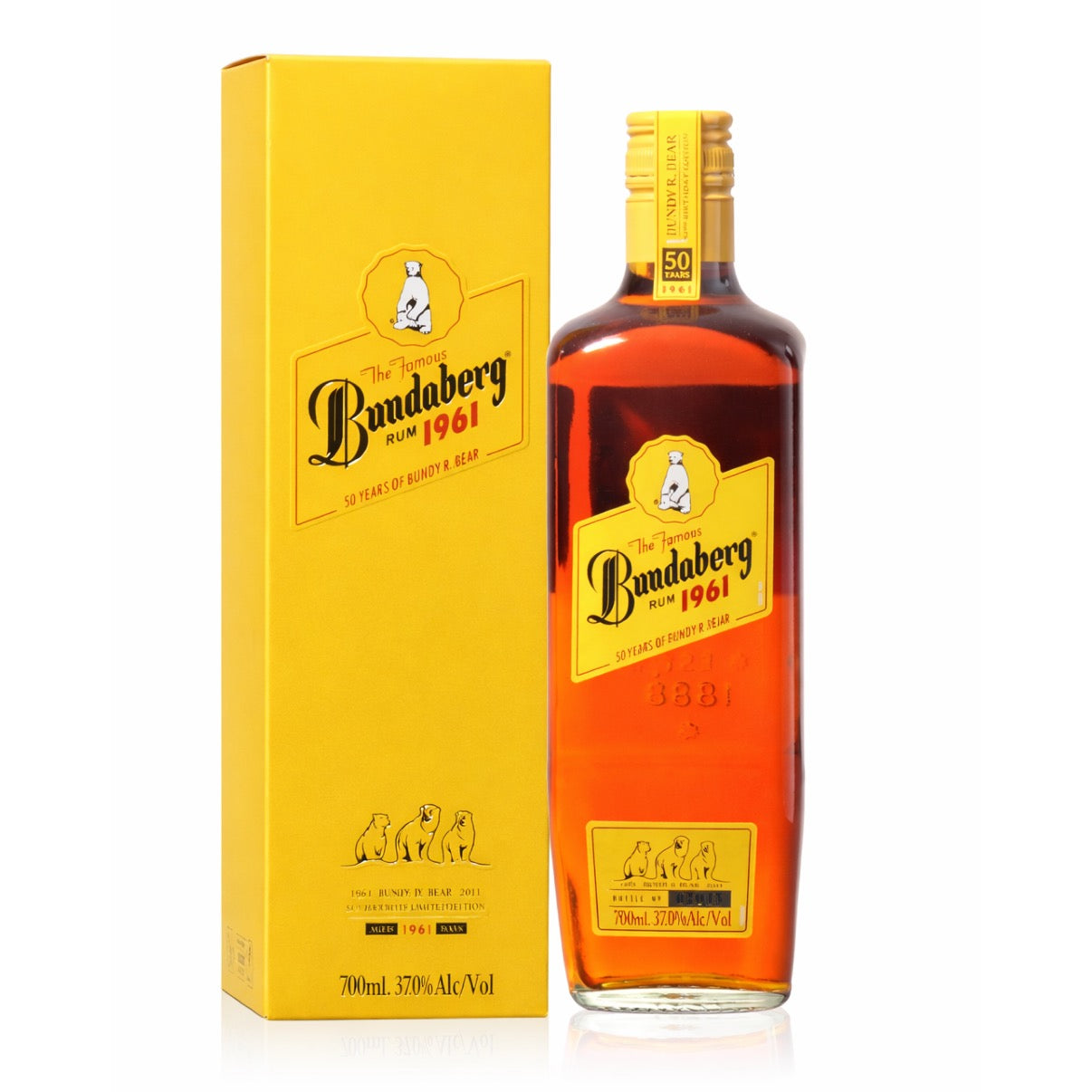 Bundaberg Rum 1961 50th Anniversary Retro Label Rum was released to commemorate the “birth” of Bundy R. Bear as the iconic mascot of Bundaberg Rum in 1961. Presented in a distinctive retro label inspired by 1960s bottlings, this limited-edition release has been matured for 1,961 days to honour Bundy R. Bear’s birth year.
